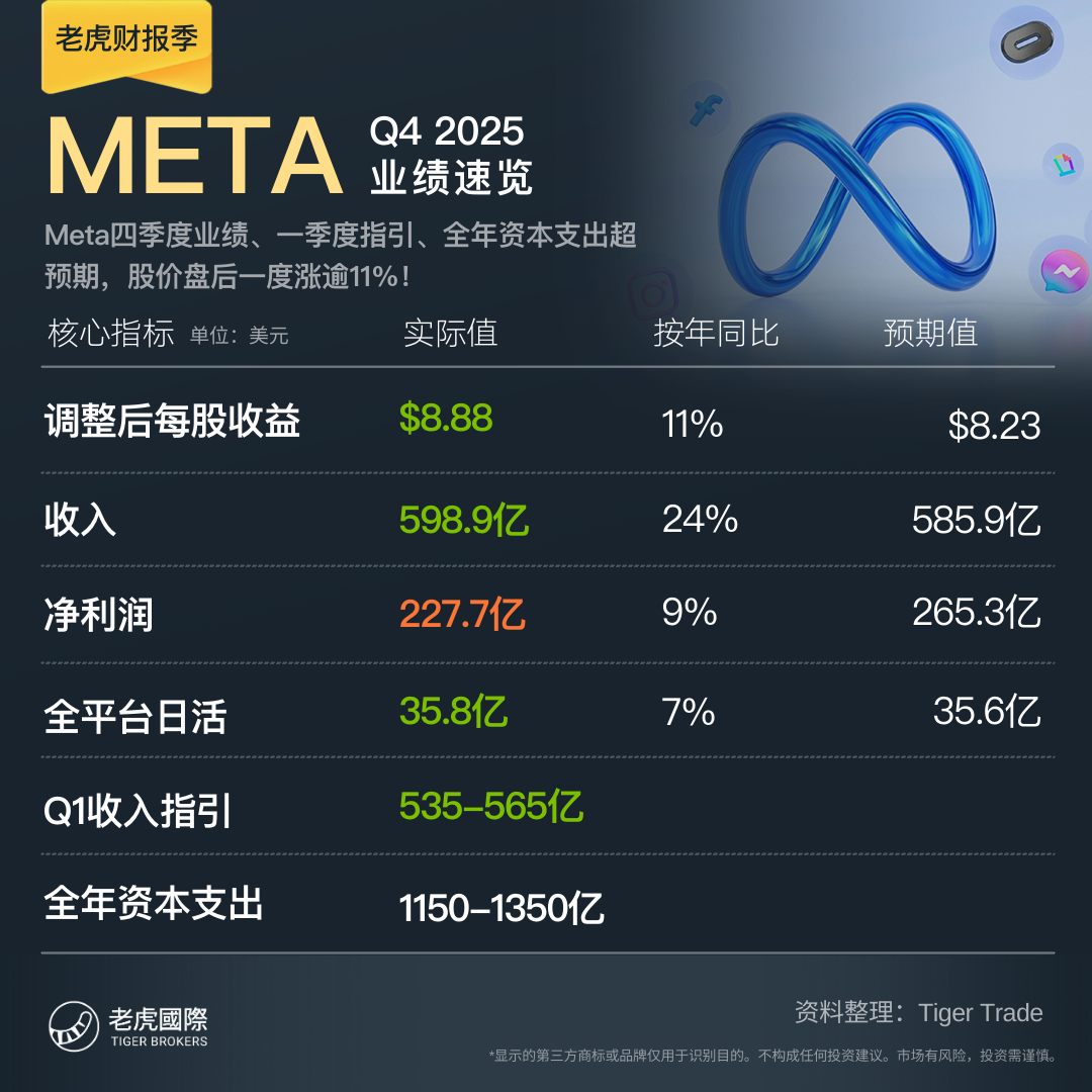 周四, Meta Platforms, Inc. 盘前大涨超7%,强劲的广告业务推动Meta去年四季度营收和今年第一季度营收指引均超出分析师预期。