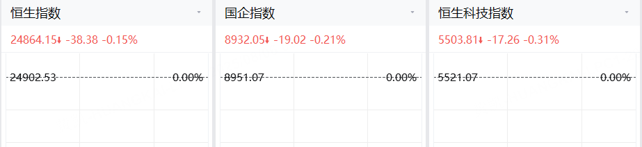 8月6日,港股三大指数小幅低开,恒指跌0.15%,国指跌0.21%,恒生科技指数跌0.31%。