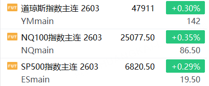 3月10日,美股三大股指期货上涨,截止发稿,道指期货涨0.30%,纳指期货涨0.35%,标普500指数期货涨0.29%。