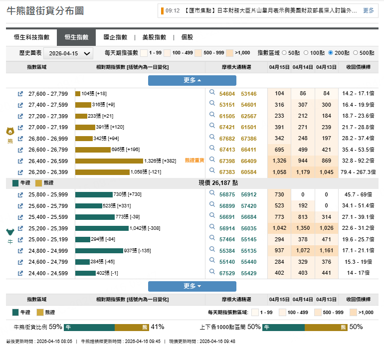 恒指上日資金流或反映投資者傾向趁高開淡倉,淡倉上日錄約2,946萬港元淨流入,恒指牛 恒指摩通八乙牛8.C /熊 恒指摩通八十熊N.P 。