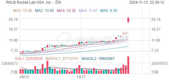 周三,Rocket Lab大幅拉升,截至发稿涨幅达42%。消息面上,第三季度财务业绩好于预期,公司营收为1.05亿美元,同比增长55%;净亏损为5193.9万美元,好于预期。公司预计Q4营收介于1.25亿美元-1.35亿美元之间,分析师预期为1.22亿美元。