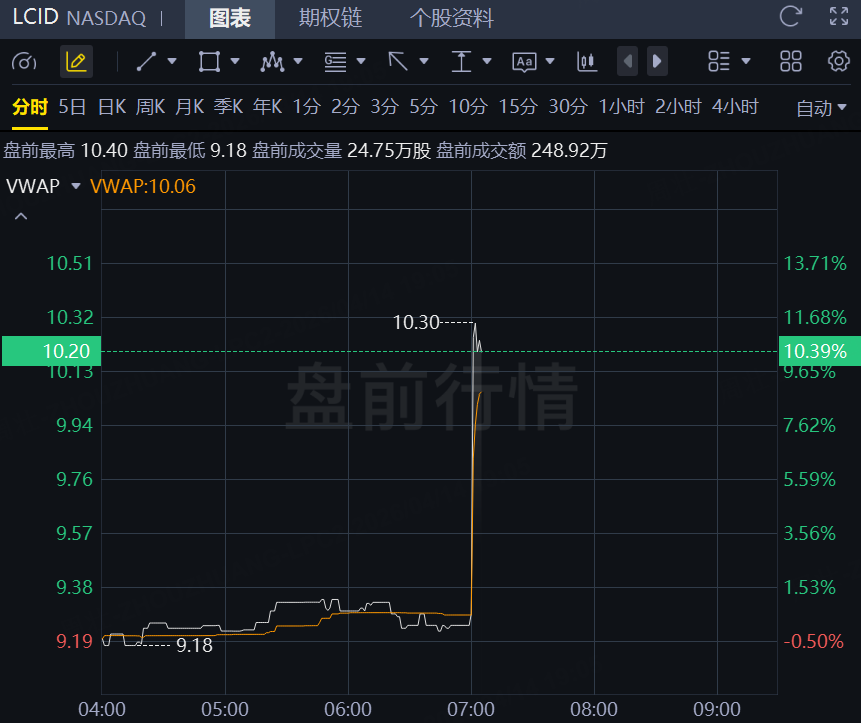 4月14日,Lucid盘前飙升逾10%!市场消息:该公司迎来新任CEO,沙特公共投资基金与优步承诺向其注资7.5亿美元。