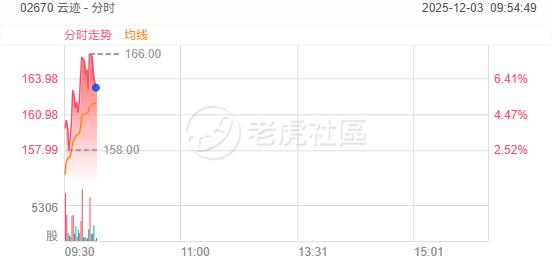 12月3日,云迹再飙近8%,股价续创上市以来新高,该股本周三个交易日累涨27%。