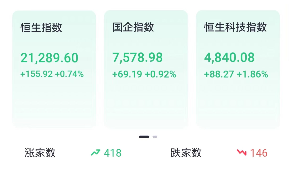 本周三(10月2日),港股于国庆假期后首日开盘,恒指高开0.74%,报21289.6点,恒科指涨1.86%,报4840.08点。