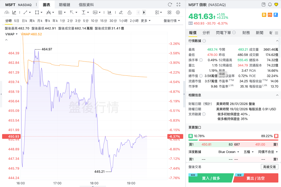 微软云业务增速放缓,资本支出创历史新高引担忧,股价盘后跌超6%