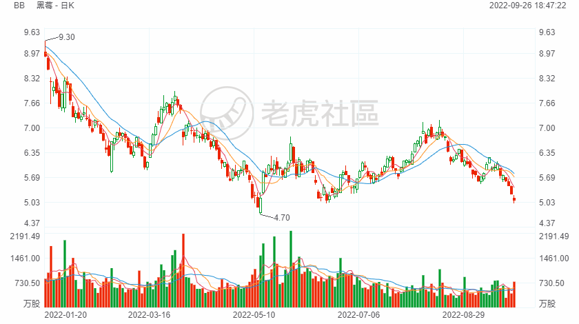 今年以来,黑莓股价下跌了45%以上,过去12个月下跌了近50%。如果投资者在过去3年和5年买进并持有该公司股票,可能在这两个时间段分别亏损了30%和42%。黑莓的企业软件服务部门(最大的业务部门)的增长低迷是其股价下跌的重要原因,情况似乎不会立即改善。
