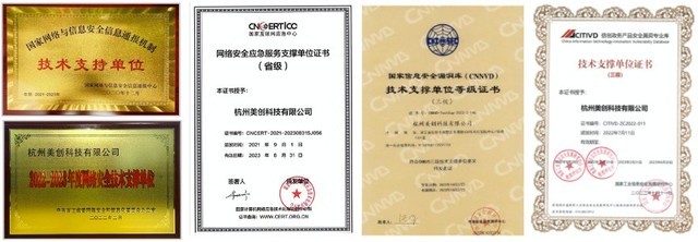 目前,美创数据安全服务已获得CNCERT、中国网络安全审查技术与认证中心等主管部门权威认证:
