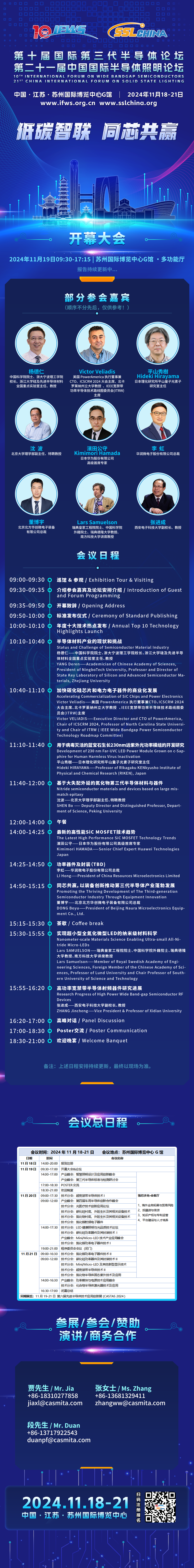 2024年11月18-21日,第十届国际第三代半导体论坛(IFWS2024)&第二十一届中国国际半导体照明论坛(SSLCHINA2024)、先进半导体技术应用创新展(CASTAS)将在苏州国际博览中心G馆举办。