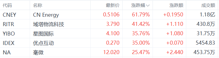 美股异动丨CN Energy涨61.79%,为涨幅最大的中概股