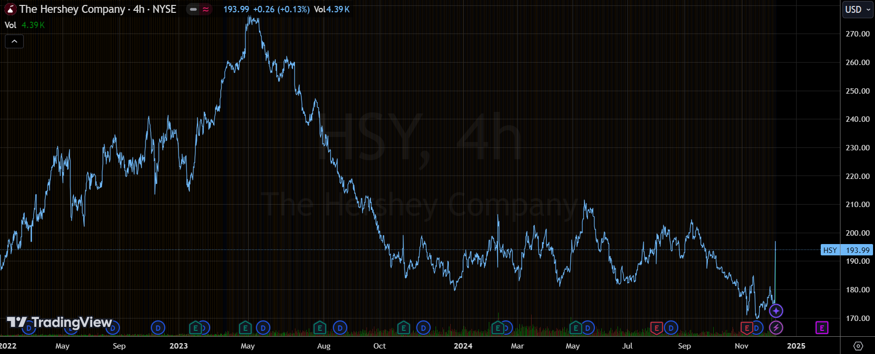 好时 在周一股价飙升11%,因为Bloomberg报道, 亿滋 正在评估对这家巧克力制造商的潜在收购,并提出了初步意向。当然,商议处于早期阶段,目前尚不确定谈判是否会促成交易。