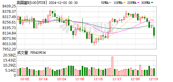 欧股市场:欧洲三大股指当天全线下跌。英国伦敦股市《金融时报》100种股票平均价格指数19日报收于8105.32点,较前一交易日下跌93.79点,跌幅为1.14%。法国巴黎股市CAC40指数报收于7294.37点,较前一交易日下跌90.25点,跌幅为1.22%;德国法兰克福股市DAX指数报收于19969.86点,较前一交易日下跌272.71点,跌幅为1.35%。