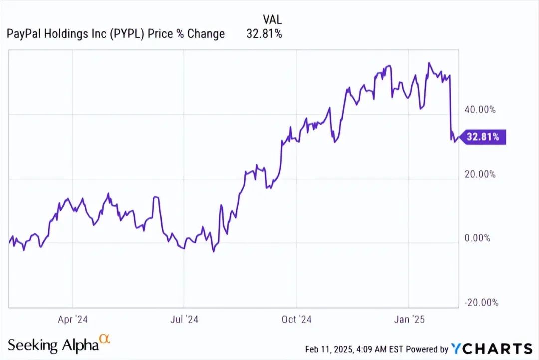 PayPal 的 2025 财年初步预期是每股收益、收入和自由现金流均有所增长。PayPal 预计 2025 财年的股票回购金额将在 60 亿至 70 亿美元之间,但鉴于该公司董事会刚刚批准了一项新的 150 亿美元股票回购计划,这家金融科技公司的回购金额可能会大幅增加……这为加速股票回购铺平了道路。在每股收益方面,PayPal 预计同比增长率将高达 10%,调整后的每股收益区间为 4.95 至 5.10 美元。PayPal 的预期基本符合市场普遍预期。