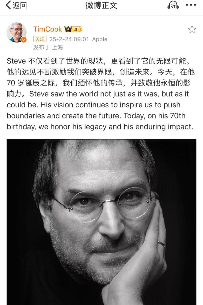 据了解,几乎每年乔布斯的诞辰、逝世周年日,库克都会发文纪念。三言搜索库克微博发现,这已经是他第11次发文纪念乔布斯了。