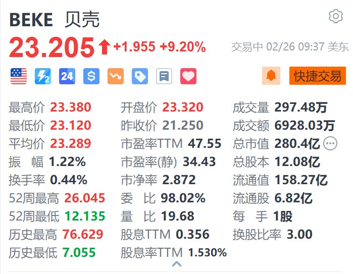 贝壳(BEKE.US)涨9.2%,报23.2美元。消息上,日前,北京住房公积金管理中心发布通知,公积金“直付房租”业务自1月20日起开展。贝壳找房旗下公司北京信富住房租赁有限公司,成为公积金“直付房租”业务首批试点企业之一,也是唯一一家非公企业。(格隆汇)