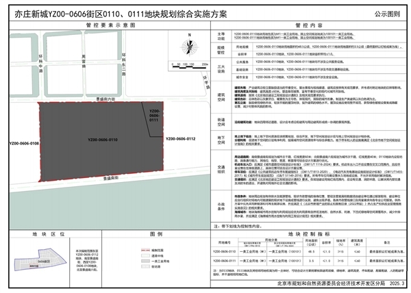 根据北京市规划和自然资源委员会经济技术开发区分局近日发布的《关于亦庄新城YZ00-0606街0110、0111地块规划综合实施方案》,YZ00-0606街区0110、0111地块位于亦庄新城的核心区域,西至小米二期项目。