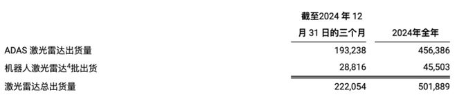 2024年,禾赛总共交付了50.19万台激光雷达,同比增长126%,其中包括面向ADAS量产领域交付的45.64万台激光雷达,同比增长134%。