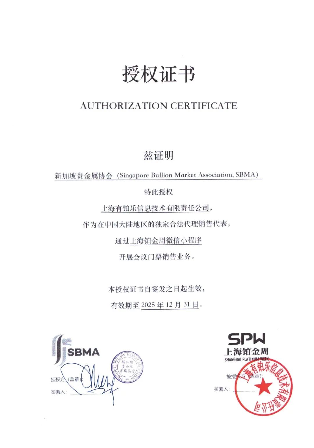 新加坡贵金属市场协会(SBMA)与世界铂金投资协会(WPIC)达成2025 APPMC的战略合作!