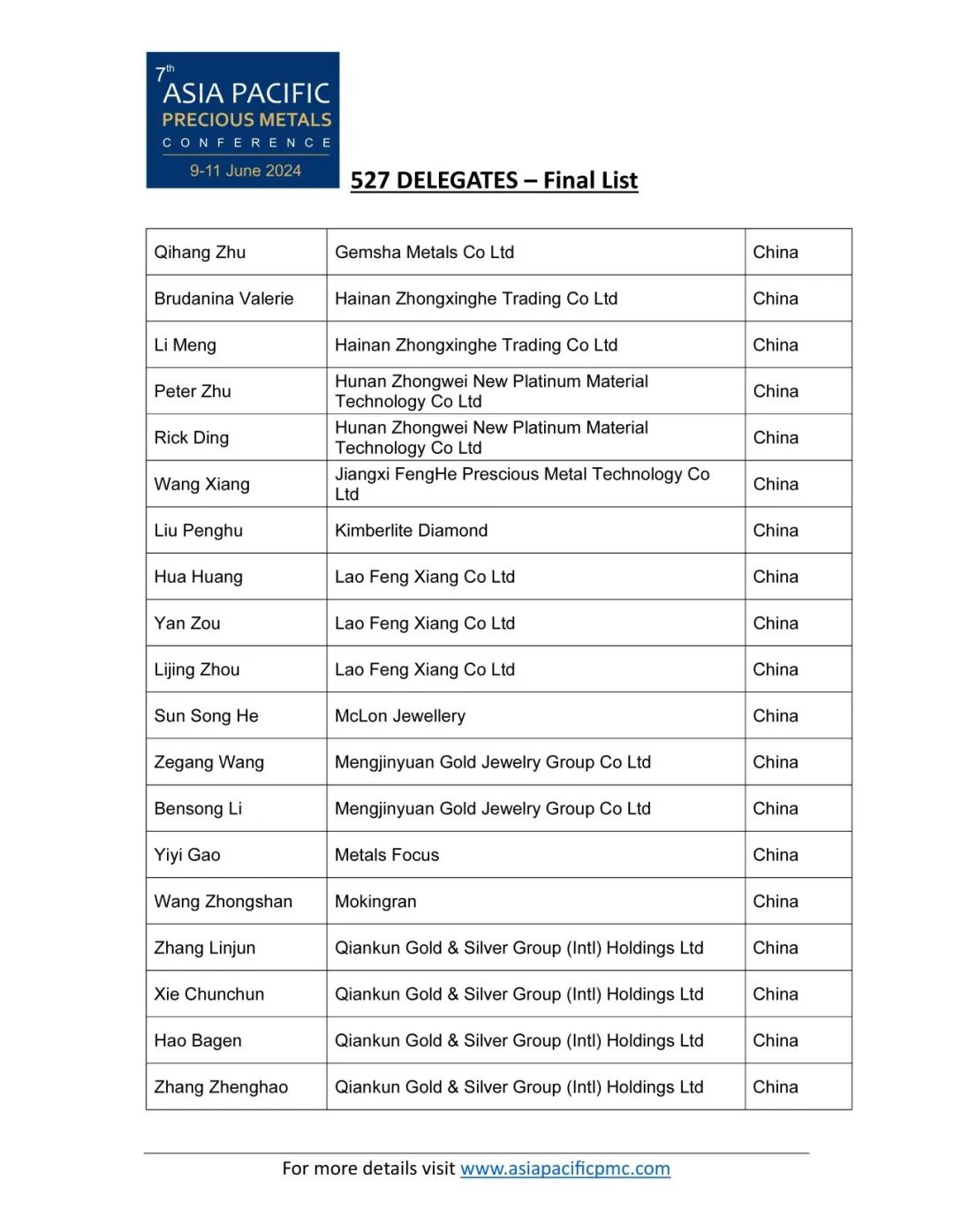 中国和日本的显著增长:这两个关键市场的参会人数增加,反映出该地区对贵金属行业日益增长的兴趣。