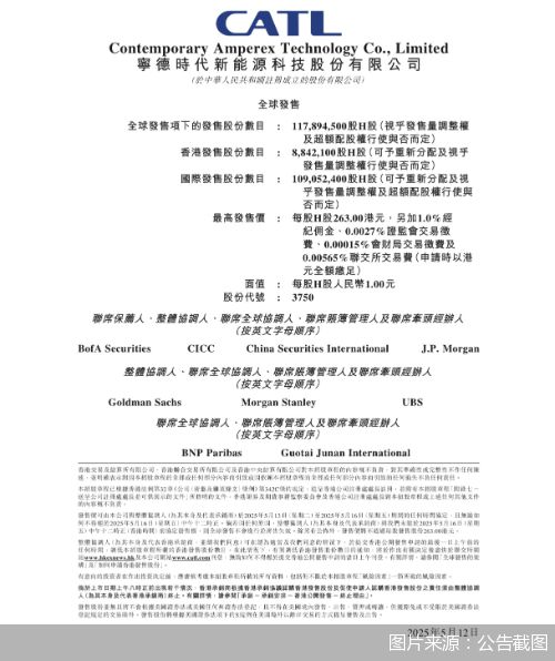 5月12日,宁德时代披露H股招股说明书,以及H股发行价上限、H股香港公开发售等,预计于今年5月20日在中国香港联交所主板挂牌并开始上市交易。