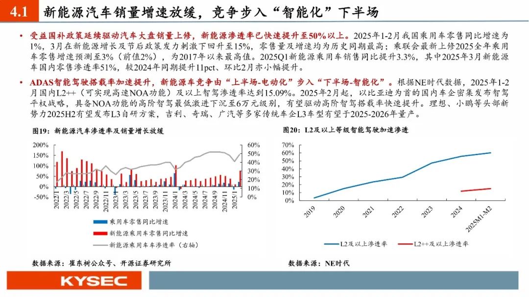 3、汽车:整车板块估值阶段性放大特征显著,行业竞争格局持续胶着,埋伏2025年新车爆品周期。2025年智能驾驶将迎产业奇点,ADAS在整车竞争中的重要性提升,优选品牌势能向上、2025年车型矩阵丰富的品种。