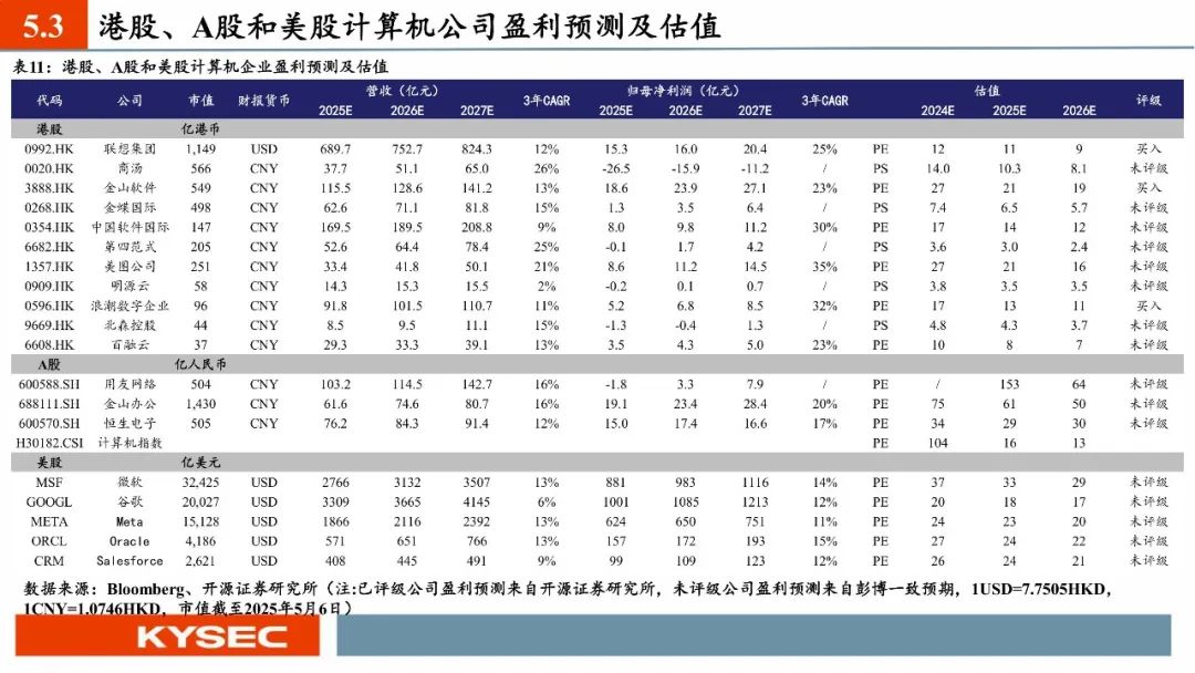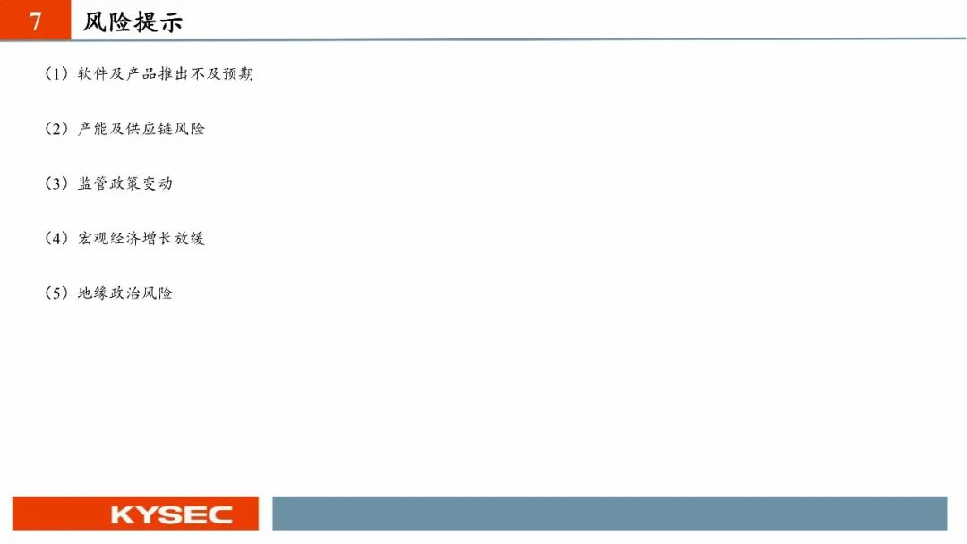 风险提示:软件及产品推出不及预期、产能及供应链风险、监管政策变动、宏观经济增长放缓、地缘政治风险。
