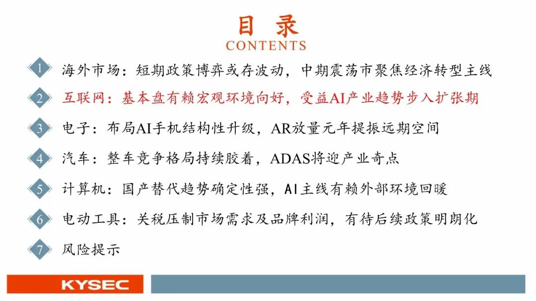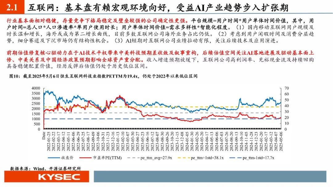 1、互联网:具备价值及成长的混合属性,受益AI产业趋势步入扩张期,板块性估值回升首要决定因素仍是宏观环境向好。