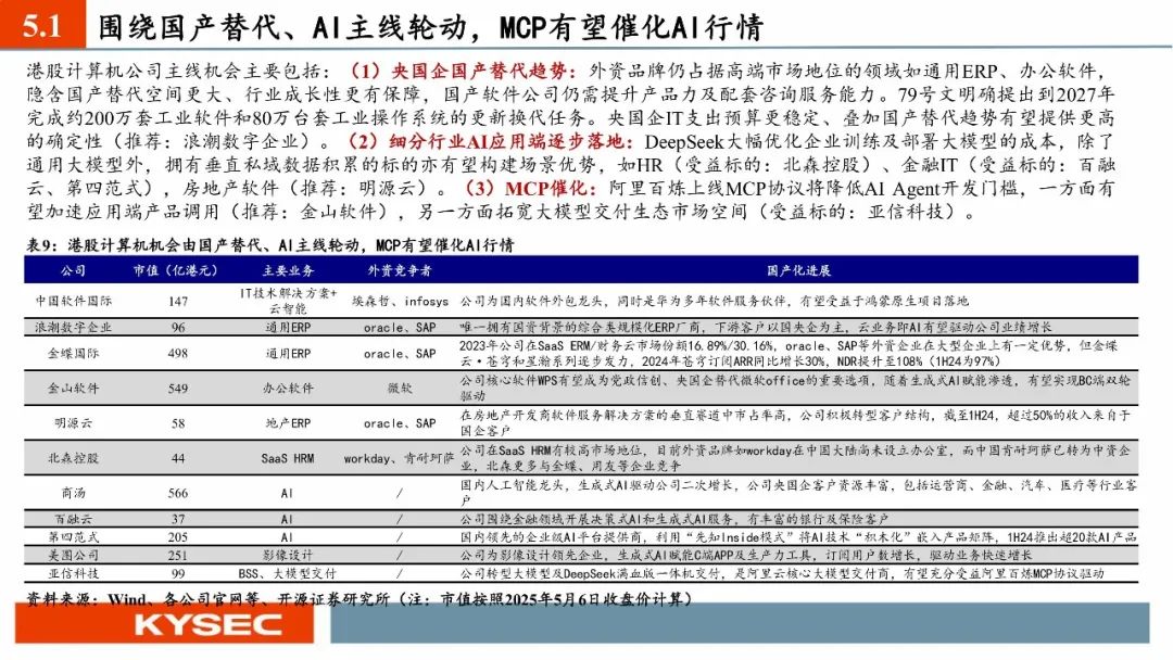 4、计算机:围绕国产替代、AI主线轮动,MCP有望催化AI行情。