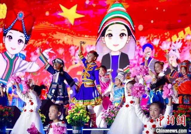 图为“六一”少儿文艺汇演现场。李林 摄文艺汇演在开场舞《童心耀中华》中正式开始。舞蹈《唐宫盛宴》、非遗节目《卓舞》、体育舞蹈《我的篮球梦》等精彩节目赢得现场观众阵阵掌声,展示了西藏少年儿童的良好精神面貌。