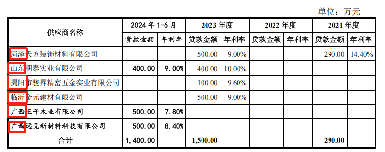招股说明书披露的升华小贷和湖州民融放款对象涵盖云峰新材供应商、经销商、直销客户、商标授权客户,覆盖了云峰新材上下游全链条,而且自2021年至2023年放款金额逐年增高。招股书披露的47家借款主体中仅有2家来自浙江省,省外市场主体占比高达95.74%。