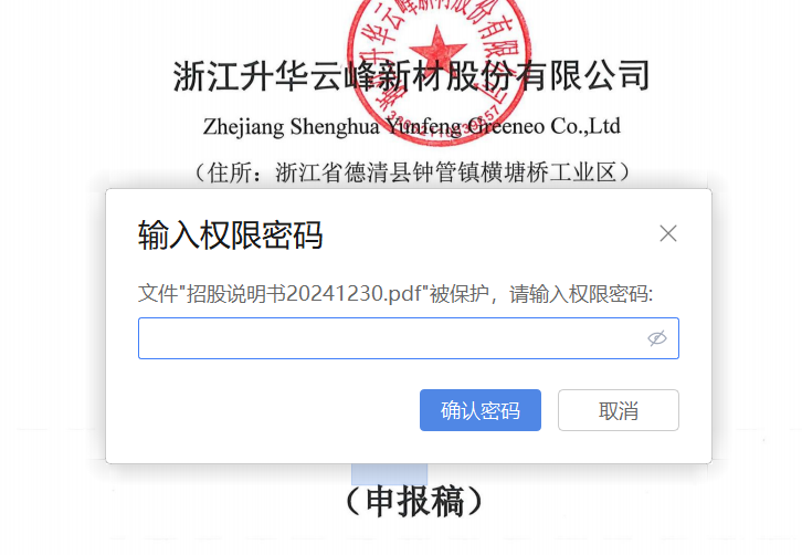 上交所的三份监管措施决定书揭开了云峰新材信息披露问题的冰山一角,其实,云峰新材信息披露留一手的情形早有迹象。有别于其它在审项目,云峰新材的相关文档未给公众提供阅读便利,信息使用者研读该公司资料时,做任何标记都需要输入权限密码,这大大降低了社会各界分析材料的效率。云峰新材为什么要这么做?