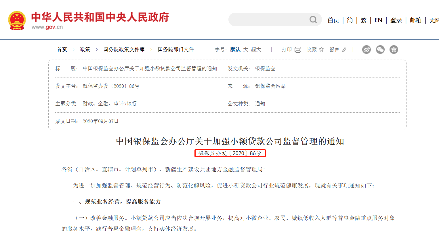 2020年9月7日银保监会发布了《中国银保监会办公厅关于加强小额贷款公司监督管理的通知》,通知要求小贷公司注重服务当地。小额贷款公司原则上应当在公司住所所属县级行政区域内开展业务。对于经营管理较好、风控能力较强、监管评价良好的小额贷款公司,经地方金融监管部门同意,可以放宽经营区域限制,但不得超出公司住所所属省级行政区域。经营网络小额贷款业务等另有规定的除外。
