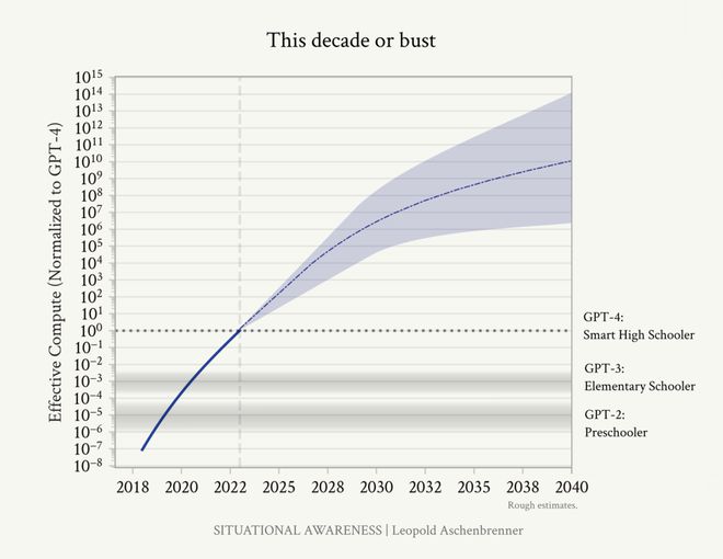 就AGI实现问题,Leopold Aschenbrenner写了Situational Awareness。