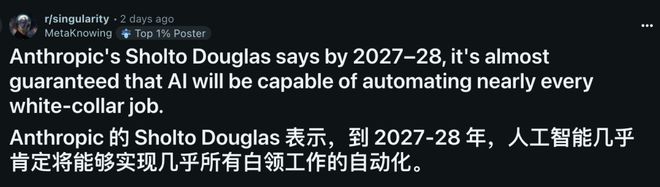 对于Sholto Douglas的“AI取代人类白领工作”观点,网友纷纷表现出了极大的兴趣。