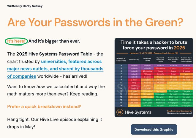 其实 Hive Systems ,已经在他们的官网上讲的非常清楚了。
