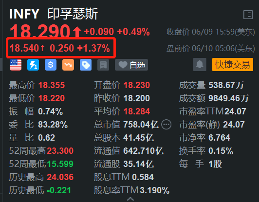 美股异动丨印孚瑟斯盘前涨1.4% 在印度甘地纳加尔开设新开发中心