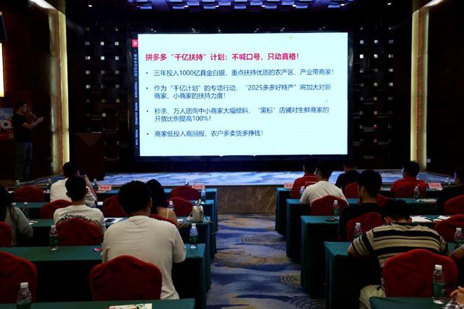 对于深谙市场节奏的商家而言,销售周期的延长不仅考验布局策略,更离不开平台赋能。招商会现场人头攒动,到场商家的手机镜头频繁对准平台政策介绍页面。“荔小枝”运营负责人林博东同样忙碌着对接拼多多平台的资源位。
