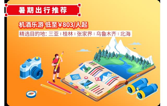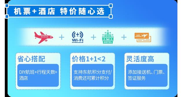 除了暑期机酒乐游活动,东航还推出了“机票+酒店”特价随心选,让行程制定更省心。旅客可以根据出行需求选择机票和酒店,还可按需添加接送机、门票等产品,一站式满足出行需求,下单时还可以使用东航积分抵扣现金支付。前往三亚、桂林、张家界、乌鲁木齐等热门旅游目的地,套餐价格低至803元/人起,助力旅客轻松开启美好旅程。