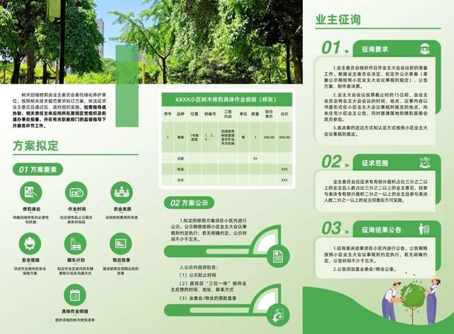 为有效解决问题,城运中心运用多次邀请市、区绿化资深专家针对修剪技术开展集中培训,并聘请专业园艺师对实际操作进行现场指导,制定操作指南,明确修剪标准、流程,要求业委会在修剪前召开至少两次业主代表听证会,听取居民意见。