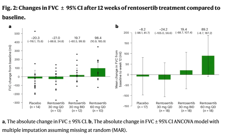 从统计数据看,Rentosertib达到了试验的主要终点:有可控的安全性和良好的耐受性,也表现出了逆转病情的潜力。