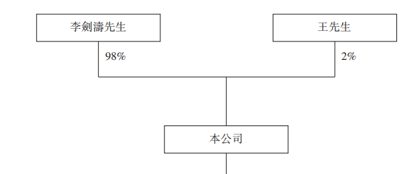 李剑涛先生持股98%,执行董事王成剑先生持股2%。
