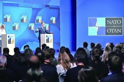 6月25日,在荷兰海牙,北约秘书长吕特在北约峰会期间出席新闻发布会  图:新华社