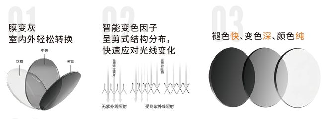 智能变色,顾名思义,就是镜片能“识别”周围光线,根据紫外线强弱自动调节镜片颜色。