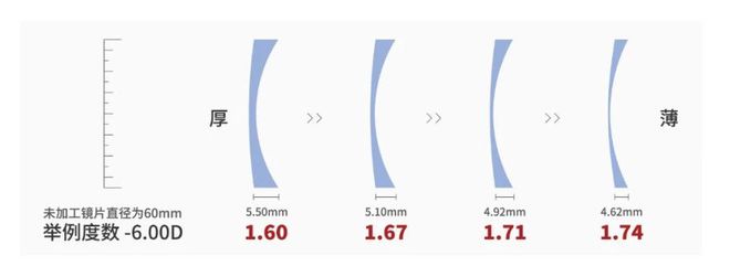 明月提供的高折射率镜片,更轻、更薄、光学性能更好。