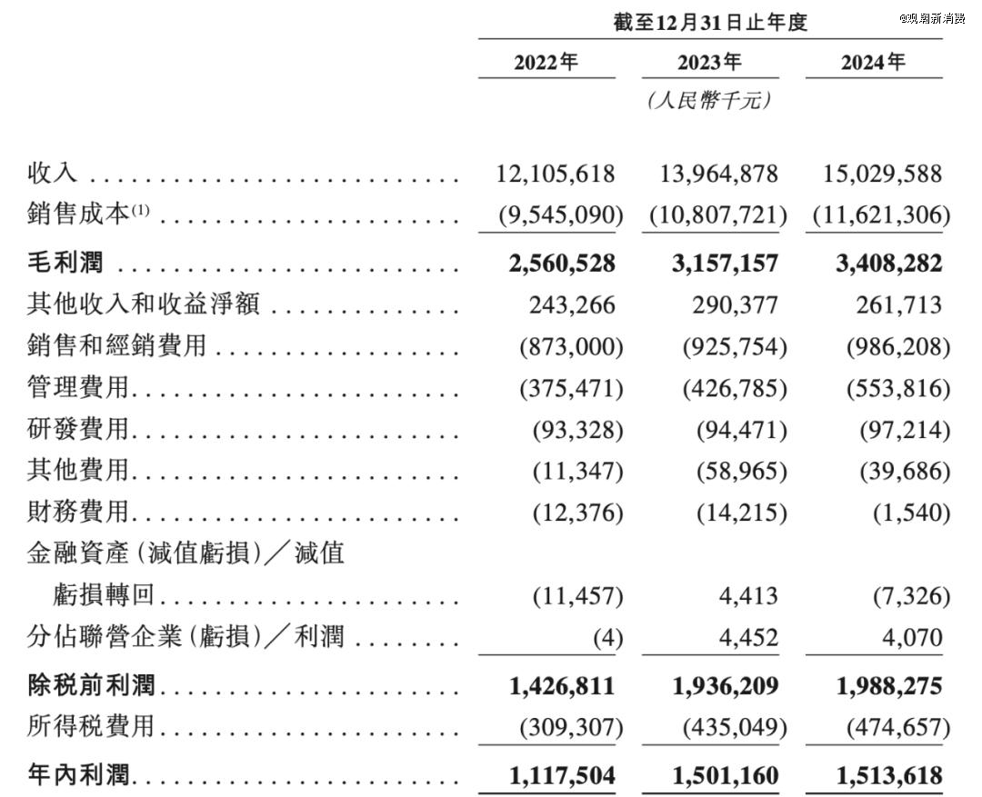 据招股书数据显示,2022年至2024年,安井食品营收分别为121.06亿元、139.65亿元、150.30亿元;同期,利润也实现稳定增长,分别约为11.18亿元、15.01亿元、15.14亿元。