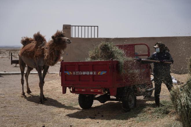 孟根说,尤其这五年来愈发干旱,缺水也缺自然草。缺草就要人工买苜蓿,这些草料比不上自然草的营养价值,骆驼这些年生病比以前多了,拉肚子、憋尿、不吃草,牧民只能请大夫,了解更多的信息以适应外界环境的变化。
