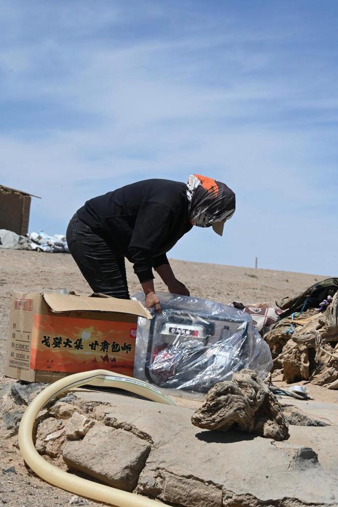 ▲孟根正拆开从拼多多上网购回来的发电机。陈蕾|摄孟根记得,自从2016年左右,马鬃山镇通了信号,能用上微信,她开始学会网络购物。在这之前,她只会原始的方式,生活用品去镇上买,大概离牧区半小时路程。如果是骆驼饲料这种镇上买不到的东西,得乘车去玉门,路上行程3到5个小时。