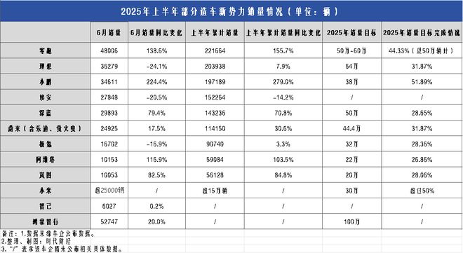 今年上半年,新势力阵营中仅小米汽车和小鹏汽车累计交付量超过年度销量目标的一半,多家车企上半年累计销量约占全年销量目标的30%左右。