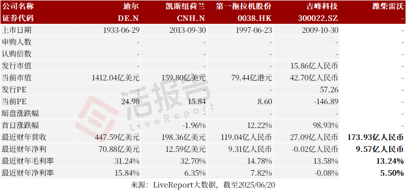 同行业IPO可比公司有:迪尔凯斯纽荷兰一拖股份吉峰科技