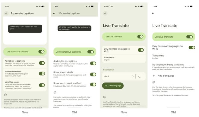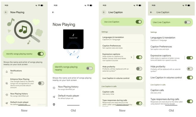 “正在播放”、“表达性字幕”和“Android 系统智能”页面现在都拥有了更新的图形,而“一览”页面则增加了新的功能描述。