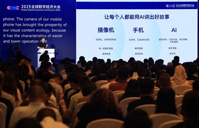 7月3日,张迪在2025全球数字经济大会人工智能融合应用发展论坛上演讲。新华社记者 张晨霖 摄“打个比方,一部具有科幻感的广告短片,使用可灵AI后能节省约90%的成本。”张迪说,视频生成模型拓展了创作的能力边界,改变了内容生产方式,能让更多人用更低的成本做出更具想象力的内容。